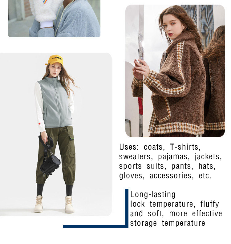 Uses:coats, T-shirts, sweaters, pajamas, jackets, sports suits, pants, hats, gloves, accessories, etc.